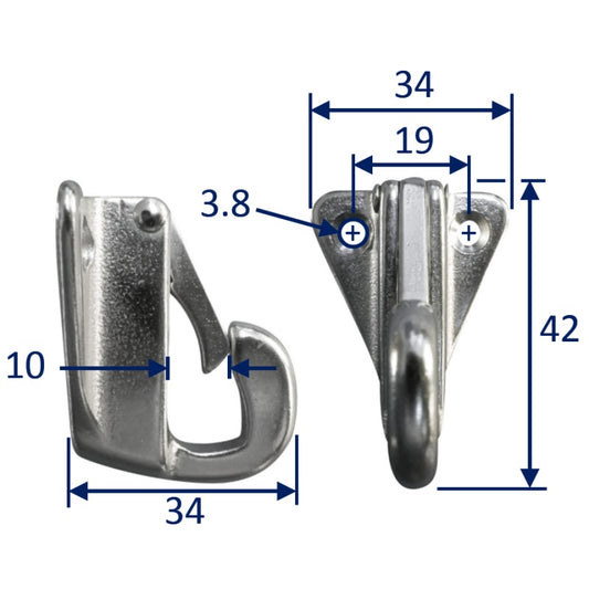 • Boat Canopy Hook, Lacing Hook In 316 Stainless Steel, 2 Horizontal Holes, Compact Design