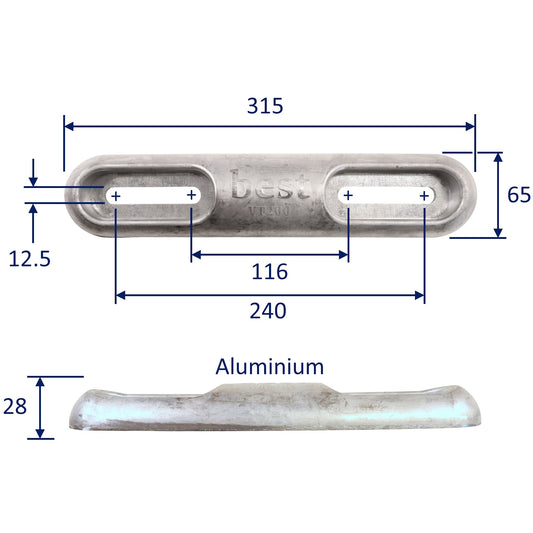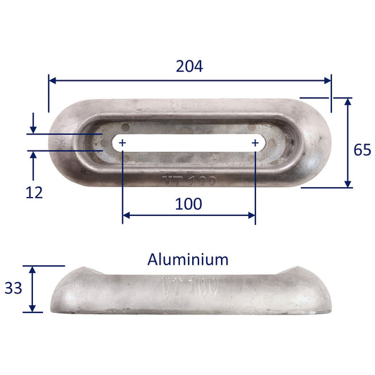 • Aluminium Sacrificial Anode, Vetus 100 Type For Hull Mounting, For Corrosion Protection In Brackish Water