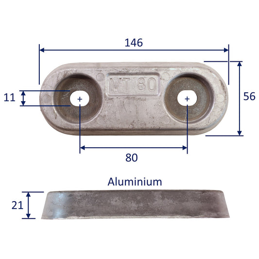 • Aluminium Sacrificial Anode, Vetus 80 Type For Hull Mounting, For Corrosion Protection In Brackish Water