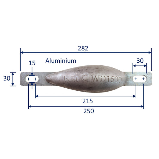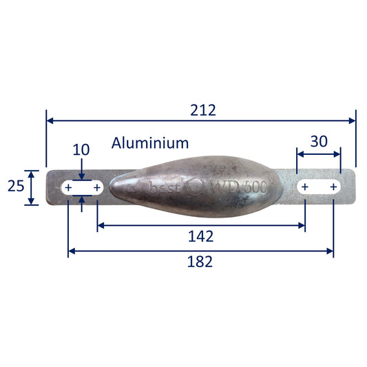 • Aluminium Sacrificial Anode, Water-Drop Shape, Smooth Moulded Shape For Less Drag, 500g