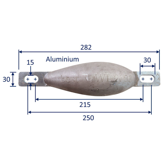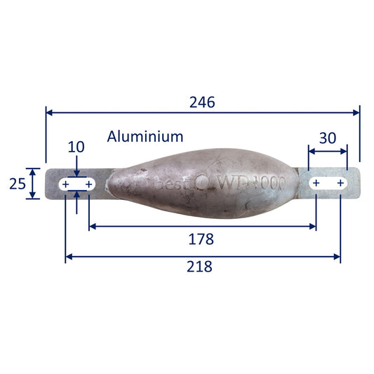 • Aluminium Sacrificial Anode, Water-Drop Shape, Smooth Moulded Shape For Less Drag, 250g