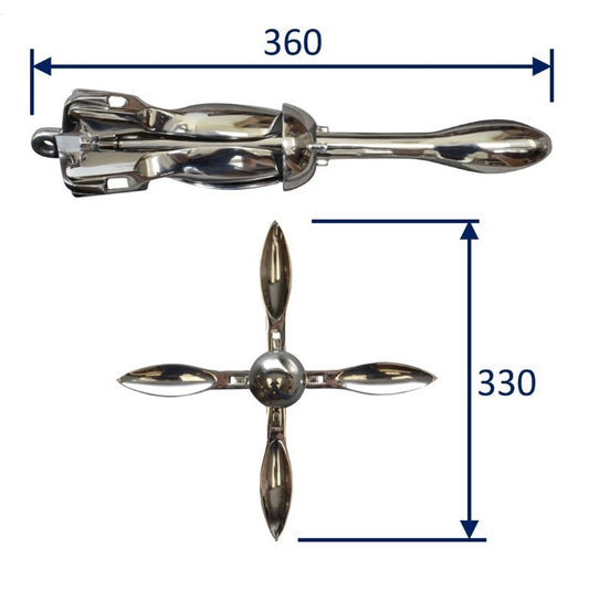 • Stainless Steel Anchor, Folding Grapnel Anchor, Polished 316 Stainless
