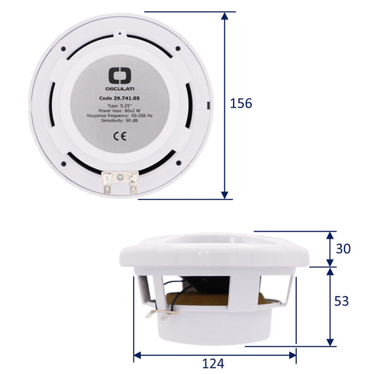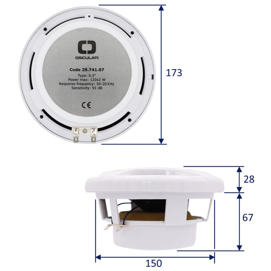 • Pair Of 5.25” Osculati Two Way Speakers With Programmable Multicolour LEDS - Waterproof - UV Resistant – 166mm Outside Diameter