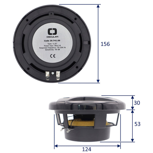 • Pair Of Black 5.25” Marine Speakers - Osculati Dual Cone Loudspeakers - Waterproof - UV Resistant