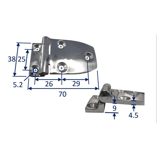 • Stainless Steel Oval Hinge, 67x48mm, 304-Grade Stainless Steel Hinge