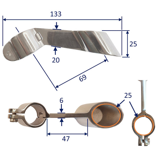 • Side Mounted Gas Strut Mounting – 8mm Pin – For Our Osculati Stainless Steel Gas Springs