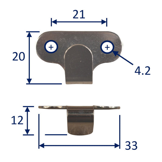 • Boat Canopy Hook, Lacing Hook In 316 Stainless Steel, 2 Horizontal Holes, 26mm Height