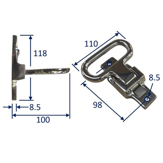 • Water-Ski Mount Hook, 90mm Outside Diameter, Stainless Steel