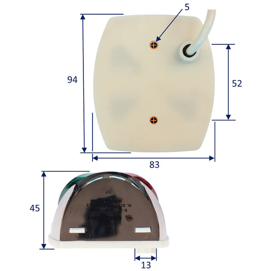 • Osculati Sphera III Bi-Colour Navigation Light – Port & Starboard Combined Navigation Light – Fully Watertight With Sealed 2.3m Wire
