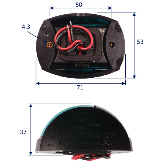 • LED Navigation Light Starboard Sphera II - Fully Watertight – With Sealed 2.3m Wire