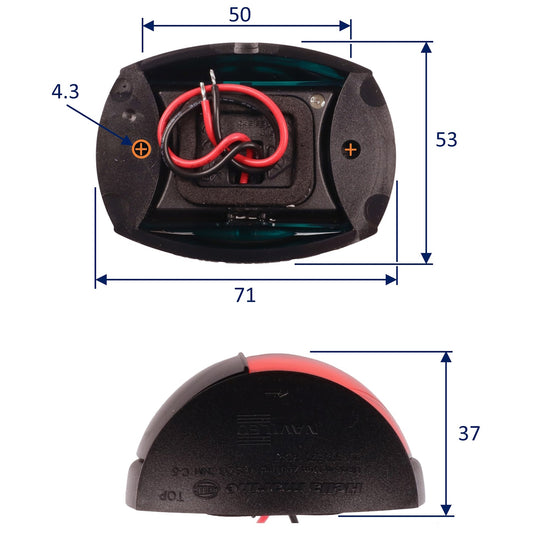 • LED Navigation Light Bi-Colour Port & Starboard Light - Sphera II - Fully Watertight With Sealed 2.3m Wire