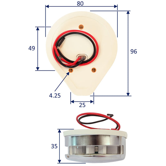 • LED Navigation Light Port Side - Sphera II - Fully Watertight – With Sealed 2.3m Wire