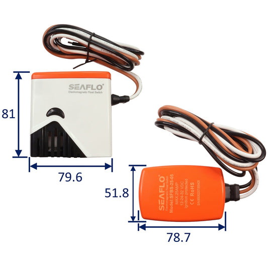 • SEAFLO Electromagnetic Float Switch / 12 or 24 Volts / Works with non-automatic bilge pumps up to 25 AMPS
