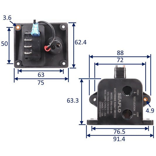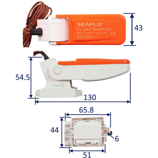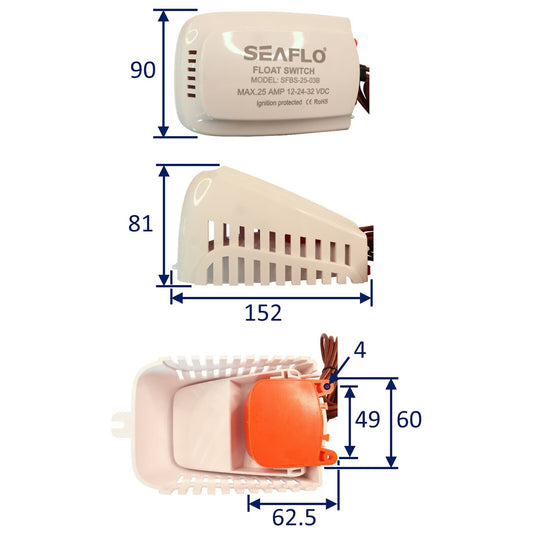 • SEAFLO Bilge Pump Float Switch, 25A Rating (Mercury Free) Suitable in Fresh and Sea Water