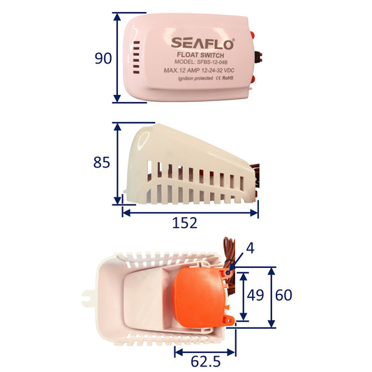 • SEAFLO Heavy Duty Bilge Pump Float Switch, (Mercury Free) Suitable in Fresh and Sea Water
