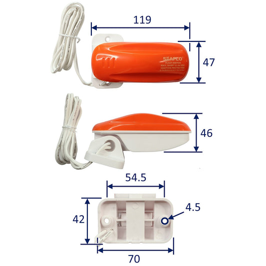 • SEAFLO Bilge Float Switch And Alarm System, With Audible (95dB) & LED Alert System, For Up To 12Amp Systems. This Is For 12Volt Systems.