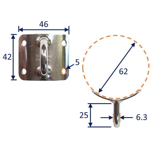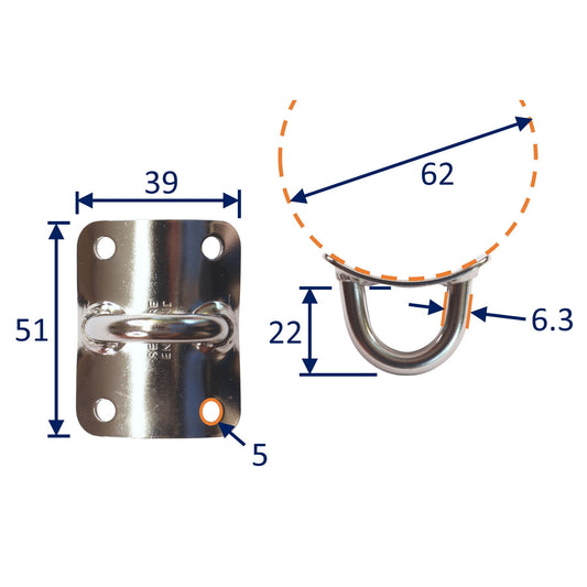 • Dinghy Mast-To-Boom Connection Plate (Gooseneck), Made From 316 Stainless Steel, Vertical Eye