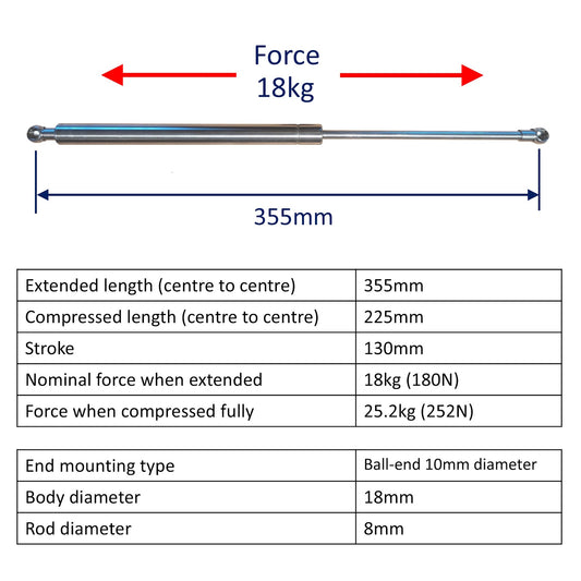 • Gas Strut / Spring – 10mm Spherical Bearings - 500mm – 20kg (200N) - Osculati – Marine-Grade Stainless Steel