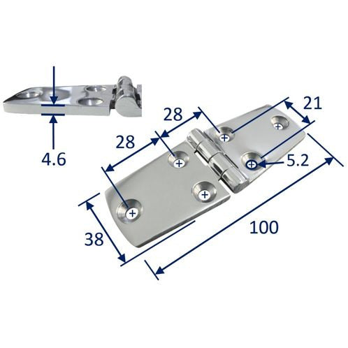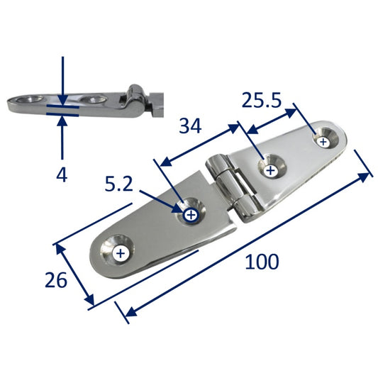 • Stainless Steel Strap Hinge - 316 Grade Stainless Door Hinge With Polished Finish 100x26mm