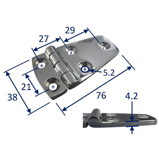 • Stainless Steel Hinge - 316 Grade Stainless Door Hinge With Polished Finish 76x38mm Symmetric