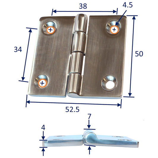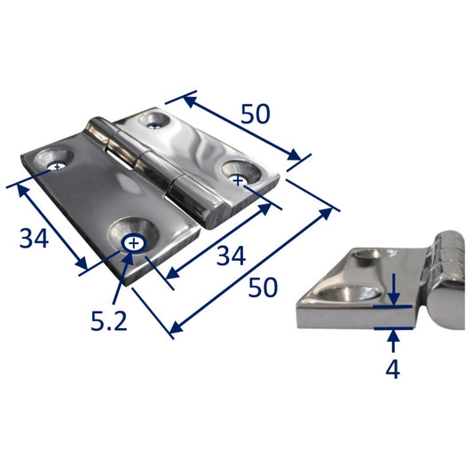 • Stainless Steel Butt Hinge – 316 Grade Stainless Door Hinge With Polished Finish 52.5x50mm