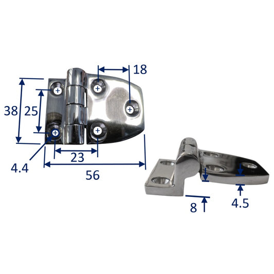• Stainless Steel Offset Hinge - 316 Grade Stainless Door Hinge With Polished Finish 56x38mm