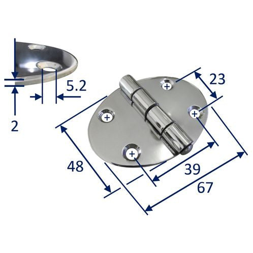 • Stainless Steel Oval Hinge, 67x48mm, 304-Grade Stainless Steel Hinge