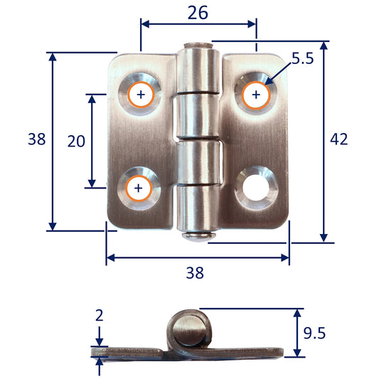 • Stainless Steel Butt Hinge – 316 Grade Stainless Door Hinge With Brushed Finish 38x38mm