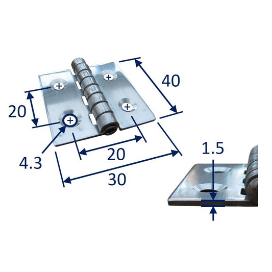 • Stainless Steel Butt Hinge, 40x30mm, 304-Grade Stainless Steel Hinge