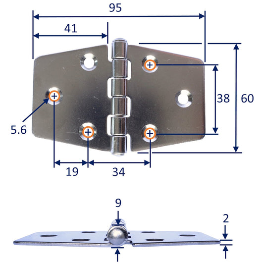 • 316-Grade Stainless Steel Hinge 95x60mm - Suitable For Interior Or Exterior Use
