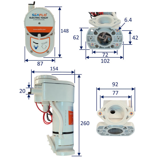 • Manual to Electronic Seaflo Toilet Conversion Kit With Built in Macerator – 12V