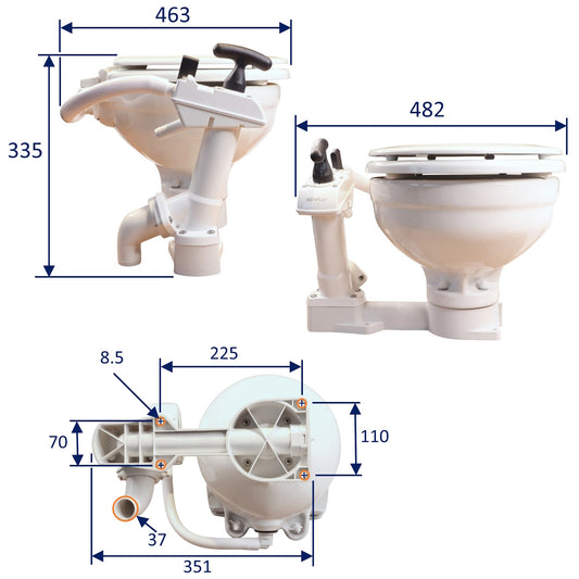 • Seaflo Marine Toilet With Ceramic Bowl – Manual Operation – Compact Design