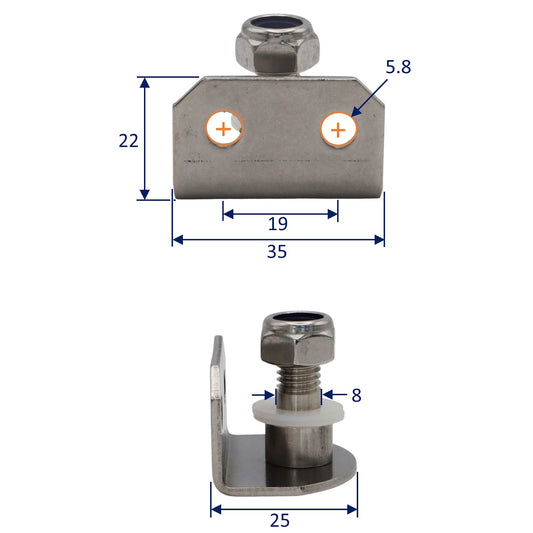 • Side Mounted Gas Strut Mounting – 8mm Pin – For Our Osculati Stainless Steel Gas Springs
