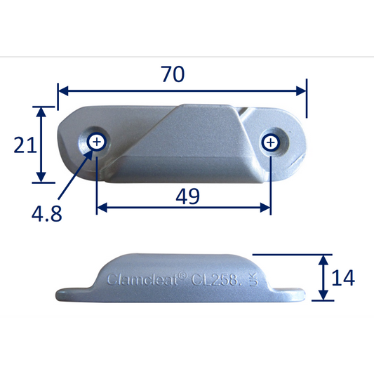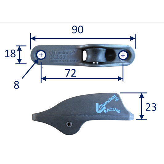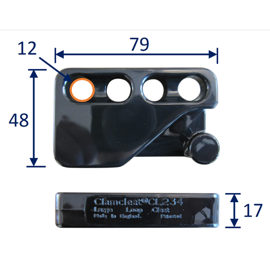 • Roller Jam Cleat For Line Size 3mm to 6mm. Clamcleat (CL236AN)