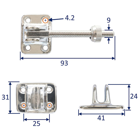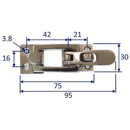 • Screw Down Hatch Fastener, Chrome Plated Brass, Length 93mm