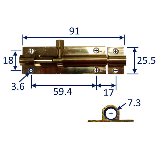 • Brass Marine Latch Bolt 75mm / Barrel Bolt / Boat Locker Latch