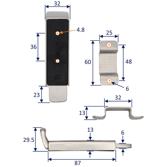 • Stainless Steel Door Latch – Polished Slide Latch – With Detent To Keep In Position – 316 Stainless Steel