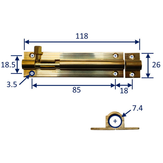 • Brass Marine Latch Bolt 50mm / Barrel Bolt / Boat Locker Latch