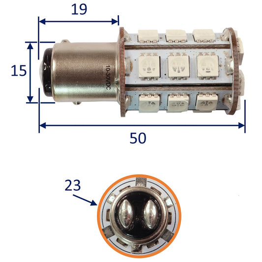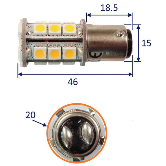• Interior LED Bulb, BA15D Fitting, Warm White, 279 Lumen, 23W, 10-30V DC, Double Contact Base, 21 LED
