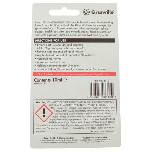 • Lock Thread, 10ml Extra Value Pack, Liquid Thread-Locking Compound & Thread Sealer
