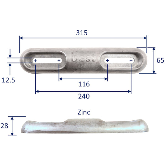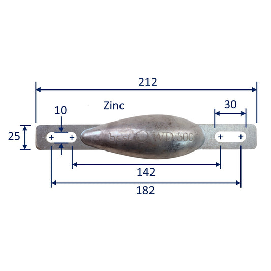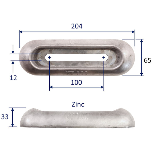 • Zinc Sacrificial Anode, Vetus 100 Type For Hull Mounting, In Salt-Water For Corrosion Protection In Salt-Water
