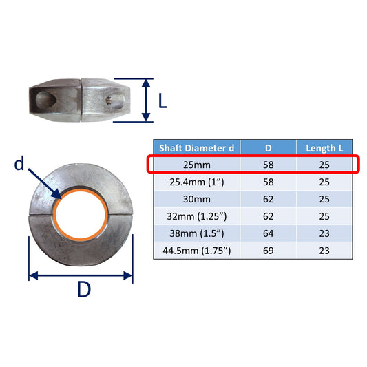 • Zinc Collar Shaft Anode For Boat Prop Shafts In Salt Water, Short Collar Anode
