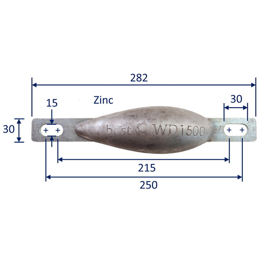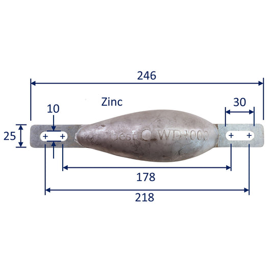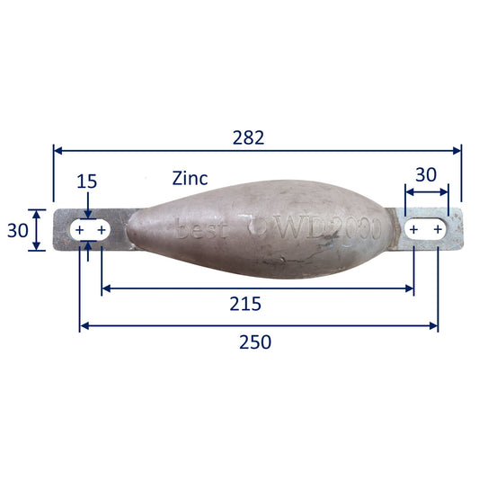 • Zinc Sacrificial Anode, Water-Drop Shape, Smooth Moulded Shape For Less Drag, 1.5Kg