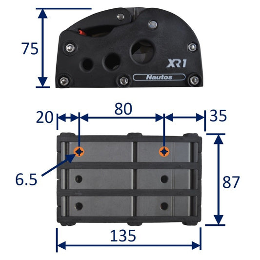 • Dinghy Main Sheet Swivel Base With Auto-Ratchet Block & Cam-Cleat 57mm Block