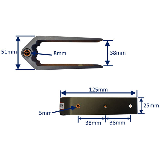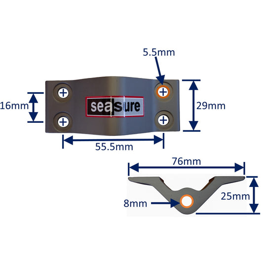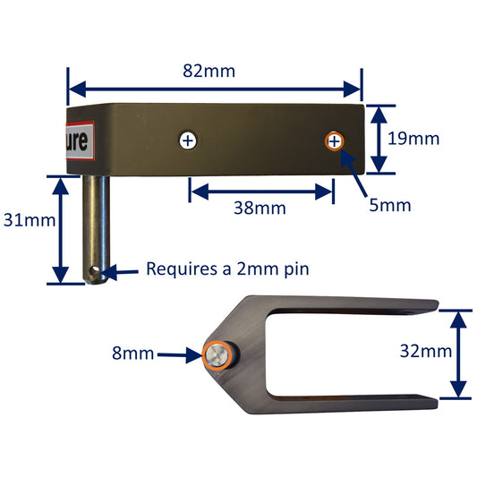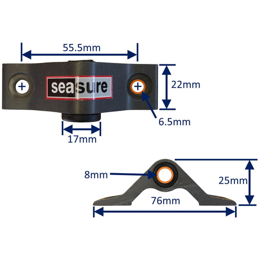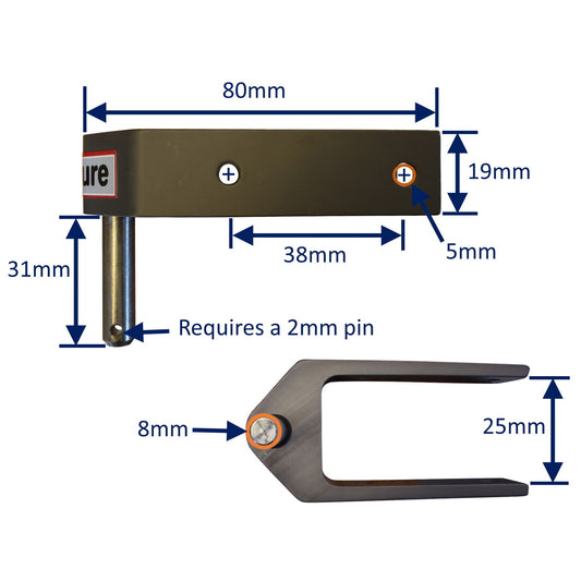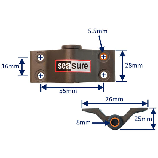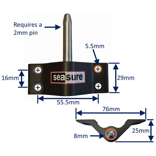 • Rudder Top Pintle Mounting With 2 Attachment Holes, 25mm Grip, Including 316 Stainless Steel Pin