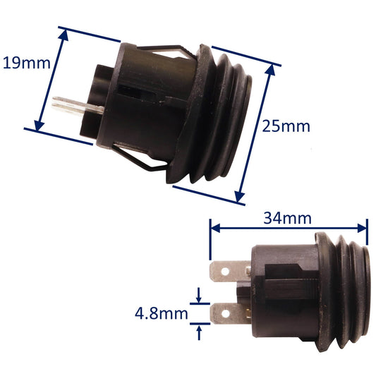 • Waterproof Latching Push Switch 10Amp Current Capacity, With Blade Terminals