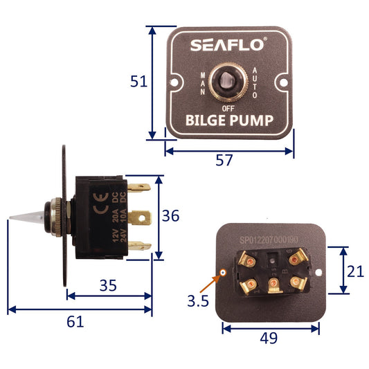 • SEAFLO Aluminium Bilge Pump Switch / 12 or 24 Volts / Switch Manual/Off/Auto