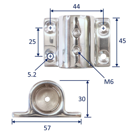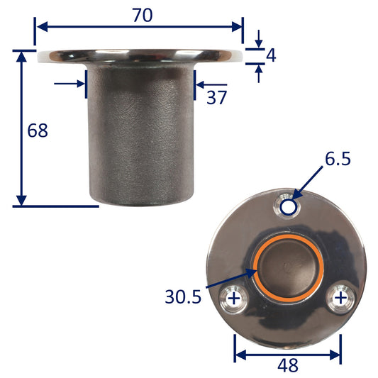 • Recessed Deck Tube Holder (30mm diameter), Canopy Frame Mounting In 316 Stainless Steel, Ideal For Canopy Frames / Bini Frames