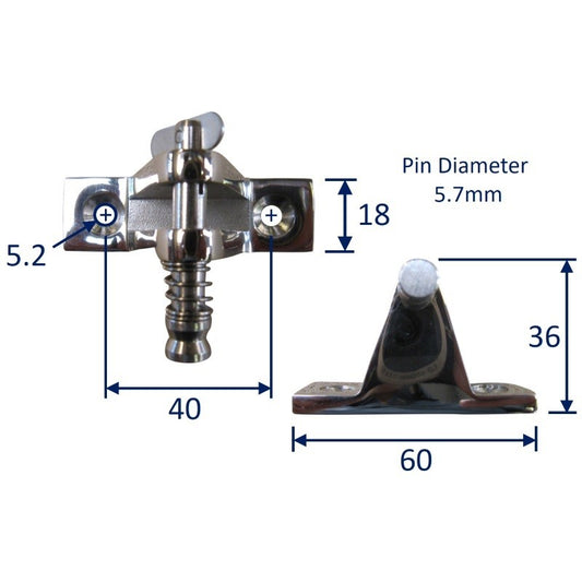 • 80 Degree Angled Deck Hinge & 6mm Removable Pin, Used For Spray Hoods & Canopies, 316 Stainless Steel