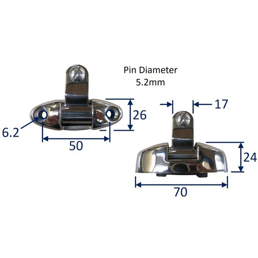 • Stainless Steel Tube Hinge With Concave Shaped Base To Fit 25mm Tube & Removable Pin, Used For Spray Hoods & Canopies